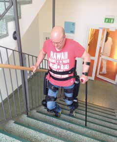 Die Treppe ist eine wahre Mutprobe für die Patienten. Komplett sensibel betroffene Querschnittgelähmte beschreiben das Gehen und das Treppensteigen, als würden sie mit dem Oberkörper über den Fußboden bzw. die Treppe schweben. Auch hier ist das Vertrauen in die Maschine, durch die der Anwender bewegt wird, enorm, vor allem beim Hinuntersteigen der Treppe. Querschnittgelähmte, die sich für das Training mit dem ReWalk entscheiden, legen ihr Augenmerk zunächst oft ausschließlich auf das Erlernen des aufrechten Gehens an zwei Unterarmgehstützen mit Hilfe des Exoskeletts.