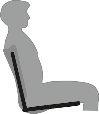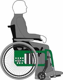 In Abbildung 6 ist eine sehr hohe Rückenlehne (etwa Tetraplegie sub C 5 bis C 4) zu sehen. Ohne Sitzgefälle muss der Rückenwinkel für diese Benutzer schon größer als 90° sein, um angelehnt und sicher im Rollstuhl sitzen zu können. In der Regel werden diese Benutzer allerdings sehr viel Sitzgefälle benötigen (größer als 10°), sodass auch hier in der Praxis Rückenwinkel von 75 bis 85° verwendet werden können.
