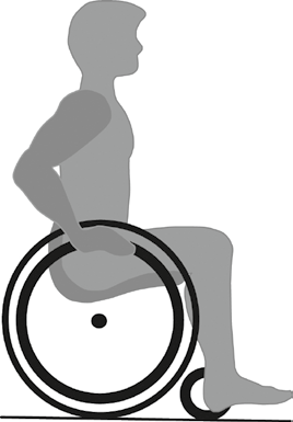 Eine waagerechte Sitzfläche, wie sie häufig bei Hemiplegikern 5 vorkommt, ist bei Versorgungen von Querschnittgelähmten (und anderen Rollstuhlnutzern, die den Rollstuhl nur mit den Armen antreiben) eher unüblich. Nur bei inkompletten Läsionen, wenn der Transfer über den Stand erfolgt, kann es einfacher sein, wenn der Rollstuhl kein oder nur sehr wenig Sitzgefälle aufweist (Abb. 3).