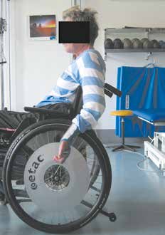 Ein Sitzgefälle ist in der Regel auch für den Antrieb des Rollstuhls mit den Armen von Vorteil 4. Sitzt man tiefer, verlängert sich der Greifweg am Greifreifen. Der Rollstuhl kann dadurch kräftiger und effektiver angetrieben werden. Das spart Kraft und schont die Gelenke des Rollstuhlfahrers.