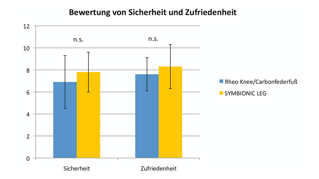 Mit dem neu­en Pro­the­sen­sys­tem ver­bes­ser­te sich das Sicher­heits­emp­fin­den der Anwen­der um durch­schnitt­lich 11,3 % und die Gesamt­zu­frie­den­heit im Mit­tel um 9,2 % (Abb. 3).