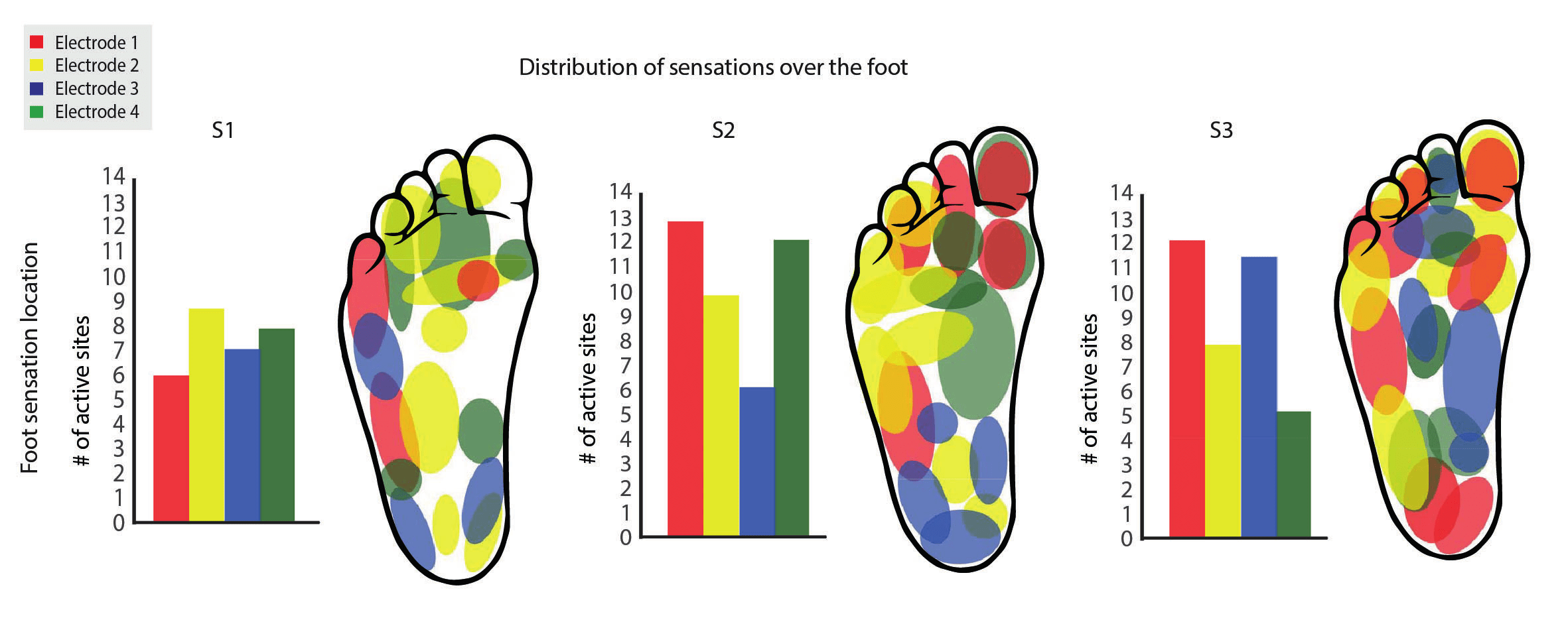 In den ersten vier Wochen, beginnend am 2. Tag nach der Implantation der Elektroden, wurde die Reaktion der drei Probanden auf Nervenstimulation täglich von Montag bis Freitag bestimmt. Über jede Elektrode wurden unterschiedliche elektrische Impulse, die sich in Dauer, Intensität und Frequenz unterschieden, eingeleitet. Die Probanden beschrieben, was sie fühlten, sowie die Position, den Ausbreitungsgrad und die Intensität der Stimulation. Die Beschreibungen ähnelten denen, wie man sie von Menschen ohne Amputation kennt, d. h., genannt wurden Berührung, Druck, Vibration und Muskelanspannung.