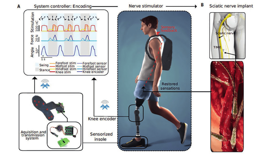 Bisher gibt es keine Berichte über die Wiederherstellung des sensorischen Feedbacks durch Nervenimplantate bei Menschen mit Ober- oder Unterschenkelamputation. Diese Prothesenträger sind folgenden Erschwernissen ausgesetzt: