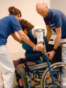 Die beigefügten Unterarmgehstützen müssen für den Vorgang des Aufstehens/Hinsetzens weit nach dorsal geführt werden. Hierzu ist eine gute Beweglichkeit im Schultergürtel erforderlich (Abb. 1).