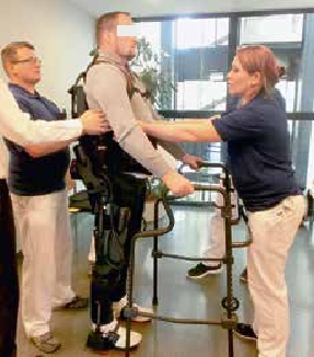 Bei allen Exoskeletten waren zu Beginn immer zwei Therapeuten pro Therapieeinheit erforderlich, bei Ekso und HAL konnte dies, abhängig von der Lähmungshöhe, im weiteren Verlauf auf einen Therapeuten reduziert werden.