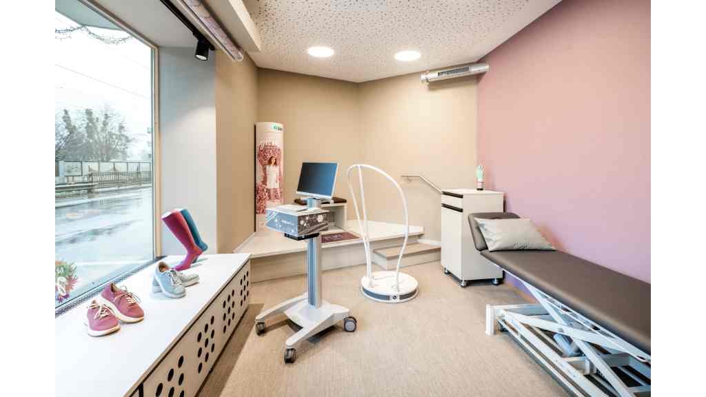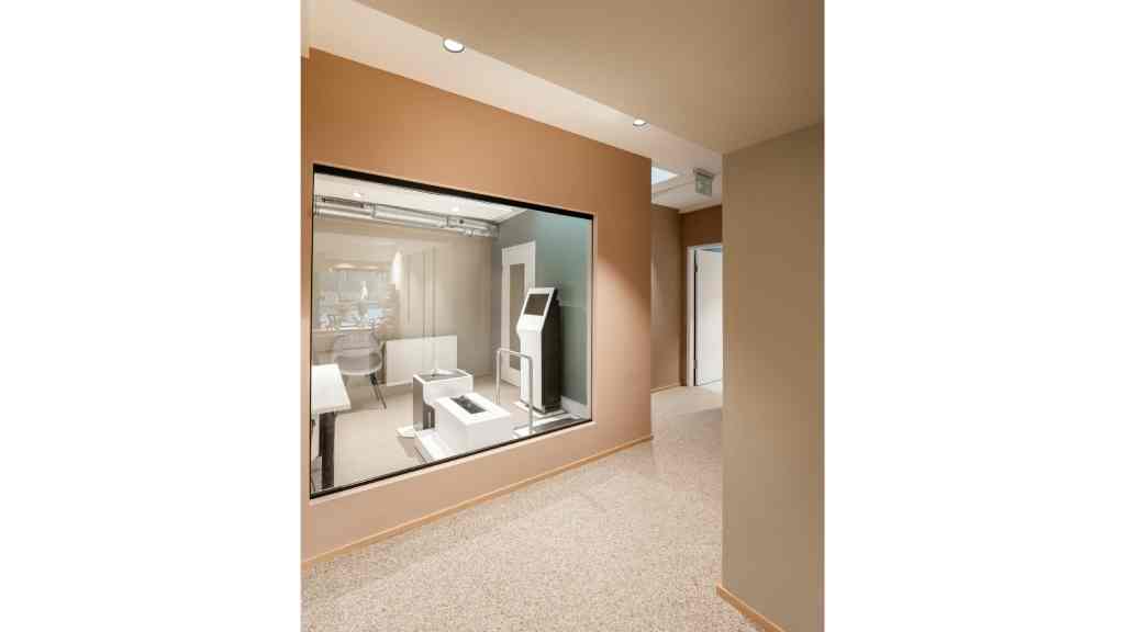 Wie schafft man es, die eigene Kompetenz durch die Gestaltung der eigenen vier Wände sichtbar zu machen? Um das zu beantworten, ist die Hilfestellung von Expert:innen nötig. Elke Park hat als verantwortliche Innenarchitektin maßgeblich am Raumkonzept beim Sanitätshaus Mayer mitgewirkt. Sie weiß, worauf es ankommt: „Ausgangspunkt der Gestaltung war ein Workshop, den ich mit dem Ehepaar Mayer durchgeführt habe, bei dem Familie Mayer ihre Anforderungen, Wünsche und Prozesse definieren und in die Planung einfließen lassen konnte.“ Um den Versorgungsbereich Neuroorthopädie in den Mittelpunkt zu rücken, fokussierte sich die Planung auf zwei Dinge: spezielle Versorgungskabinen und digitale Informationsangebote im Verkaufsraum. Bei den Kabinen wurde der Ansatz gewählt, mit großen durchsichtigen Scheiben die technischen Geräte wie 3D-Bodscanner oder Druckmessplatten direkt sichtbar zu machen. Sobald eine Versorgung in der Kabine stattfindet, kann die Scheibe per Knopfdruck undurchsichtig gemacht werden und sorgt so für die nötige Privatsphäre. Mit einer digital verlängerten Ladentheke können die Kund:innen zudem das gesamte Leistungs- und Produktspektrum des Sanitätshauses sehen, welches auf der Verkaufsfläche an sich nicht darstellbar wäre. Außerdem bieten Monitore am Point-of-Sale Informationen zu Versorgungen und erhöhen so das Wissen und die Therapietreue der Patient:innen. Ein digitaler Besucher-Stopper sind auch die Informationsterminals, an denen die Kund:innen interaktiv nach Informationen suchen können und durch das Angebot des Sanitätshauses geführt werden. Durch diese Maßnahmen, ergänzt beispielsweise noch durch ein neues Lüftungs- und Klimasystem, welches die Verweildauer der Kund:innen auf der Fläche erhöht, gelingt es, Versorgungsschwerpunkte zu inszenieren. Elke Park ist sich sicher: „Die Sichtbarkeit der Kompetenzen schafft Vertrauen für Kunden.“