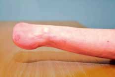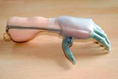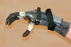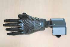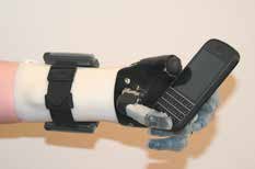Die Ansteuerung erfolgt über Disc-Elektroden ebenfalls im distalen Bereich. Der Daumen wurde auf Wunsch des Anwenders nur ummantelt und ist ohne Funktion. Jedoch wurde ein funktionelles Daumensegment angebaut. Fazit: „Ich kann mein Handicap nicht verbergen; ich trage diese Prothese, also zeige ich sie.”