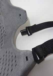 Mittels eines solchen Druckverfahrens entsteht ein hochindividualisierter, biokompatibler Helm, der in jedem handelsüblichen Geschirrspüler gereinigt werden kann. Im Klinikbetrieb hält das Material den dort verwendeten Desinfektionsmitteln leicht stand. Das Anlegen des Helms ist sowohl für den Patienten als auch für die Pfleger einfach durchzuführen. Beim 3D-Druck des Helms werden Einschuböffnungen für handelsübliche Kinnriemensysteme ausgespart; der gewählte Kinnriemen kann also einfach eingehakt werden (Abb. 5).