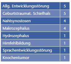 - neuropädiatrische und andere Begleitsymptomatik sowie weitere Krankheitsbilder aufgezeigt.