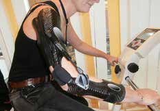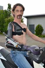 Mitt­ler­wei­le wer­den auch bei Ple­xus­pa­re­sen Orthe­sen­sys­te­me beim Motor­rad­fah­ren ein­ge­setzt. Hier sind die Beschleu­ni­gungs- und Ver­zö­ge­rungs­kräf­te jedoch wesent­lich höher, und das Dämp­fungs­sys­tem muss dem­entspre­chend grö­ßer dimen­sio­niert und bes­ser ange­passt sein. Zum Teil wer­den auch zwei unter­schied­lich wir­ken­de Dämp­fer­sys­te­me mon­tiert, die sich funk­tio­nell ergän­zen (Abb. 10a–10c).