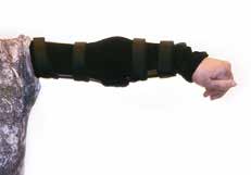 Bei der Ellen­bo­gen­lu­xa­ti­on wird gene­rell ent­schie­den, ob es sich bei einer tech­ni­schen Ver­sor­gung um eine ein­sei­ti­ge Gelenk­füh­rung oder eine bila­te­ral aus­ge­führ­te Kon­struk­ti­on han­delt. Die­se soll­te mög­lichst wenig auf­tra­gen und eng am Kör­per anlie­gen, jedoch darf die Fle­xi­on des Ellen­bo­gens nicht beein­träch­tigt wer­den. Eine Limi­tie­rung der Gelenk­be­we­gung im Sin­ne eines Exten­si­ons-/Fle­xi­ons­stopps ist sinn­voll und wird vom behan­deln­den Arzt vor­ge­ge­ben (Abb. 6a u. b).