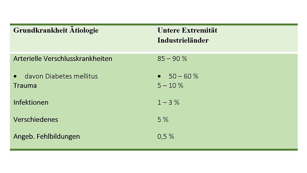 Betrachtet man die Entwicklung der Amputationsursachen der unteren Extremität in den letzten Jahren, so hat sich die Arterielle Verschlusskrankheit und hierbei speziell der Diabetes mellitus in den Industrienationen als Hauptursache deutlich manifestiert (Abb. 2).