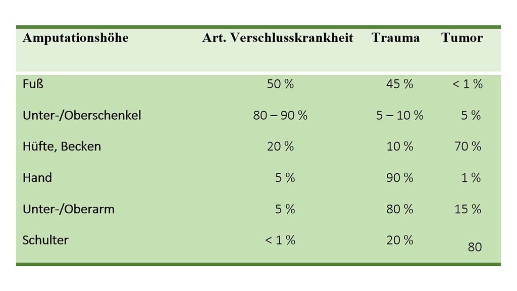 Der Verlust einer Extremität stellt immer einen traumatisierenden Eingriff dar. Ziel der Rehabilitation ist es, den schwer betroffenen und häufig multimorbiden Patienten ein höchstmögliches Maß an privatem, beruflichem und sozialem Umfeld zu erhalten. Die Anforderungen in dieser Hinsicht können Akutmedizin und Chirurgie allein nicht erfüllen. Hier ist vielmehr ein Team aus Pflegedienst, Physiotherapeut, Ergotherapeut, Orthopädie-Techniker, Psychologe und Sozialdienst gefordert 1.