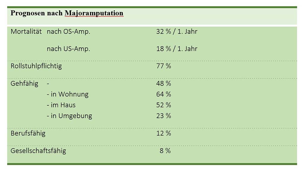 Die Lebenserwartung nach Major-Amputationen ist gegenüber gesunden Gleichaltrigen um etwa ein Drittel vermindert; dennoch liegt die Zahl der Amputierten inzwischen bei etwa 80.000 Patienten pro Jahr, parallel zur steigenden Anzahl der Diabetiker und einer erhöhten Lebenserwartung 6. Das weitere Schicksal vieler Patienten nach Amputation hängt maßgeblich von der Wiedererlangung des Mobilitätsniveaus ab (Abb. 5).
