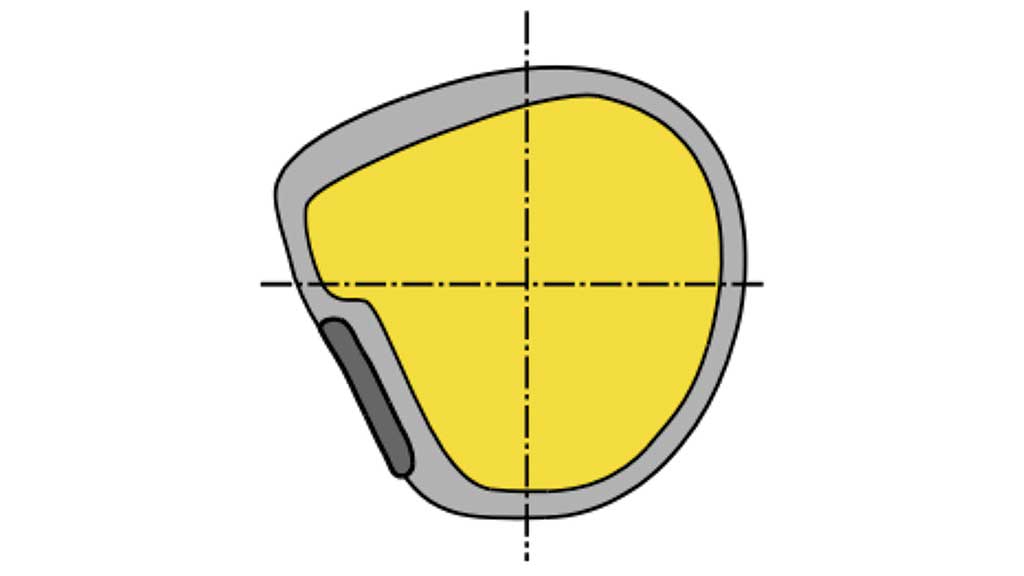 - je nach distaler Passteiladaptierungsfläche tiefste Position am Schaft, d. h. 0° bis max. 45° Lateralisierung oder Medialisierung zur Schaftlängsachse,