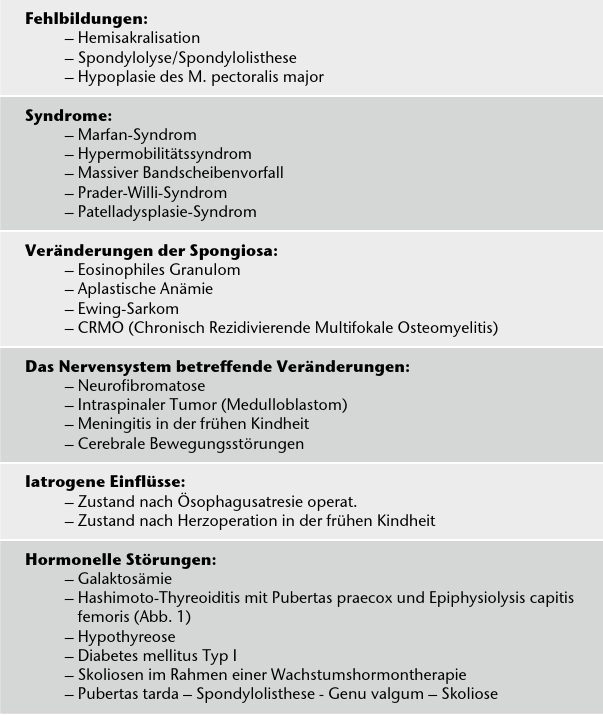 Skoliose als Begleiterscheinung von Grunderkrankungen
