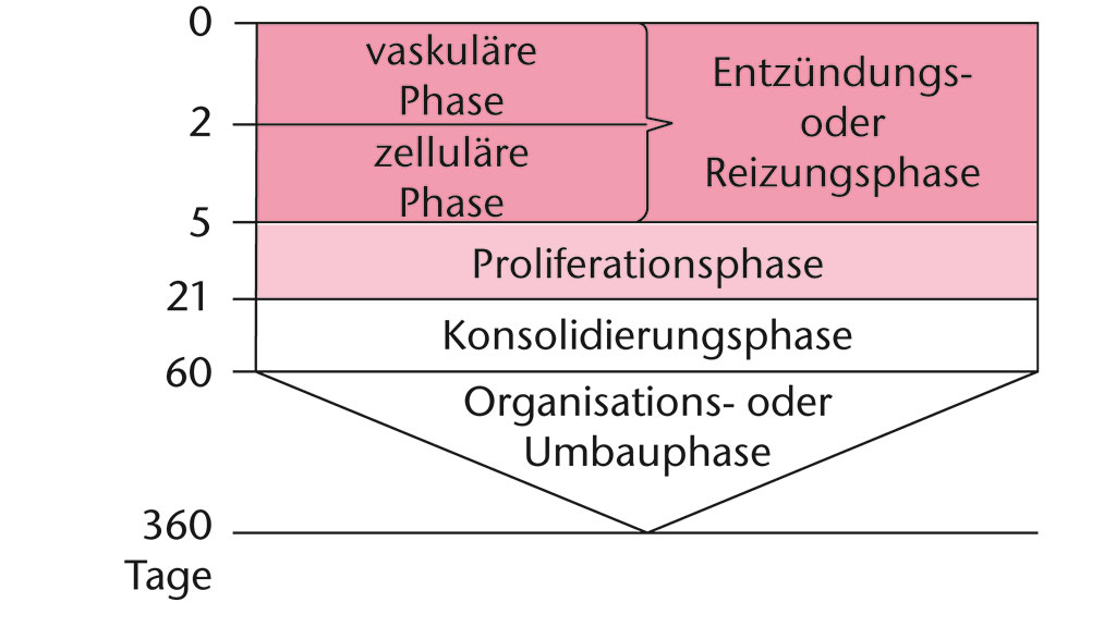 Die Wundheilung verläuft nach Kujath in vier Phasen (Abb. 1):