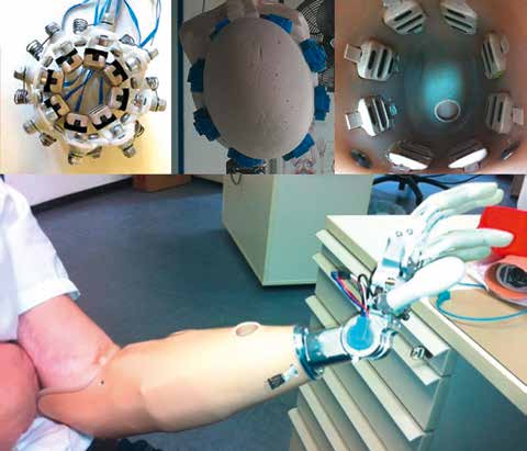 Prothesen für die oberen Extremitäten müssen nicht nur viele Bewegungsmöglichkeiten bereitstellen, sondern auch exzellente Steuerbarkeit, Zuverlässigkeit und Anwenderfreundlichkeit bieten, um akzeptiert zu werden 1. Ein großer Teil dieser Prothesen sind Fremdkraftprothesen mit elektromyographischer (EMG) Mensch-Technik-Anbindung. Die Steuersignale werden durch einfache Ermittlung der Leistung des EMG gebildet 2. In einer typischen Prothese für Unterarmamputierte werden 2 EMG-Sensoren verwendet, je einer auf den Flexoren und Extensoren des Unterarms. Mit diesem Paar von unabhängigen, antagonistischen Signalen kann ein Prothesengelenk gesteuert werden, z. B. eine Hand mit den Bewegungen „Öffnen” und „Schließen”. Diese Platzierung erfüllt folgende Anforderungen: